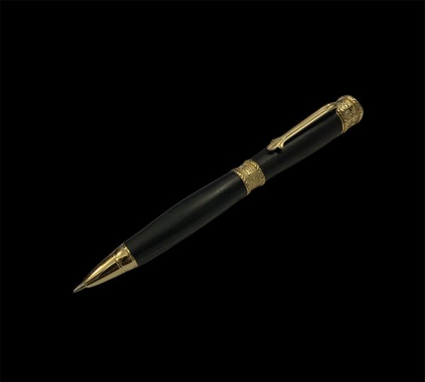 Письменная ручка серии «Faith Hope Love Gold». Деревянные вставки выполнены из натурального мореного дуба, возрастом согласно акту радиоуглеродного датирования от 1500 – 5000 лет. Каждая письменная ручка изготавливается вручную, благодаря этому в конечном результате Вы получается эксклюзивную и неповторимую письменную ручку, которая будет служить долгие годы.