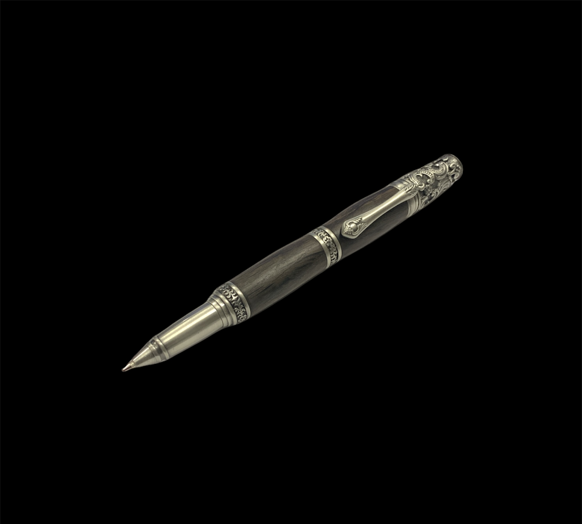 Письменная ручка серии «Victorian Silver». Деревянные вставки выполнены из натурального мореного дуба, возрастом согласно акту радиоуглеродного датирования от 1500 – 5000 лет. Каждая письменная ручка изготавливается вручную, благодаря этому в конечном результате Вы получается эксклюзивную и неповторимую письменную ручку, которая будет служить долгие годы.